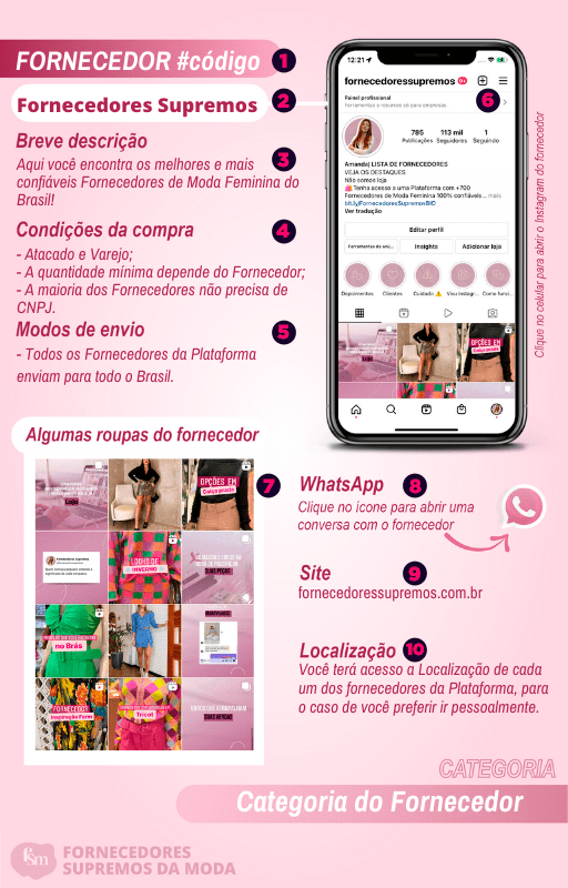 Na Plataforma você irá encontrar todas as informações de cada dos fornecedores, como: WhatsApp, instagram, localização e todas as informações de atacado.